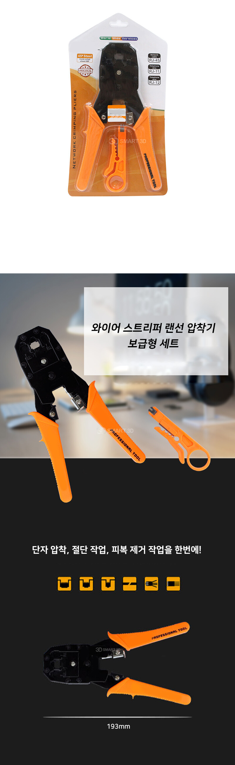 와이어 스트리퍼 랜선 압착기 보급형 세트 (네트워크 클램프 플라이어 전기선)