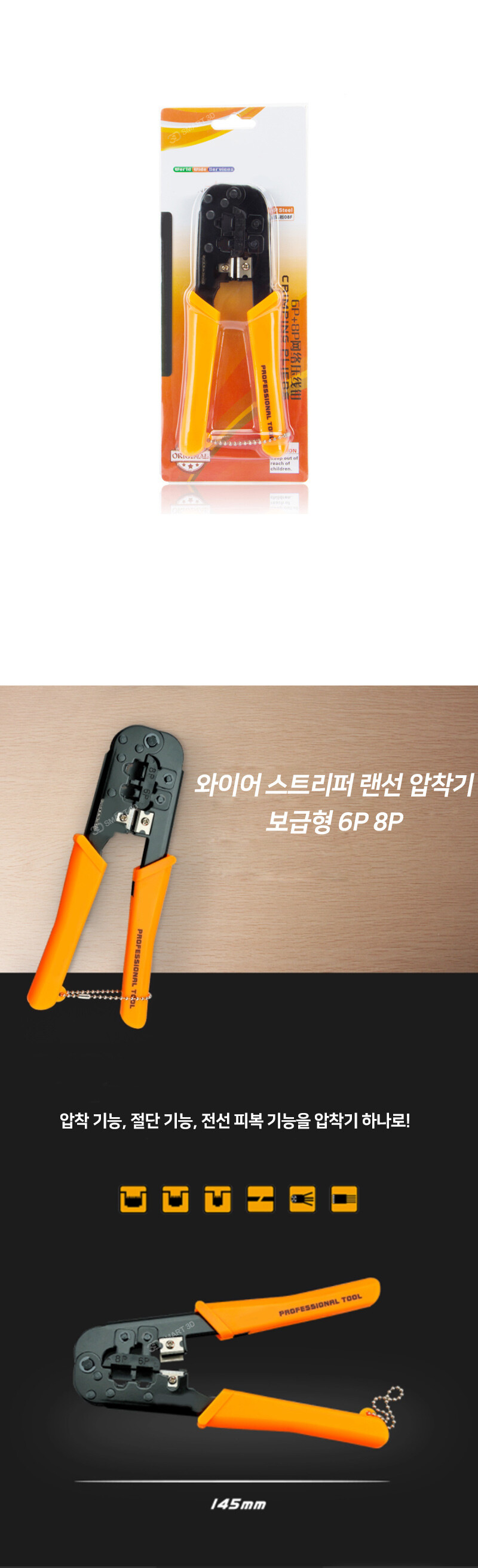 와이어 스트리퍼 랜선 압착기 보급형 4P 6P (네트워크 클램프 플라이어)