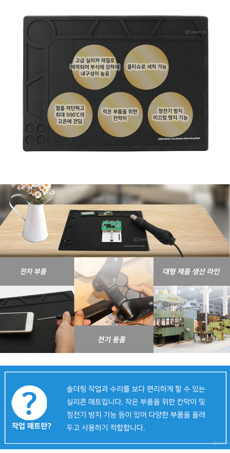 정전기 방지 단열 방수 실리콘 작업 매트 패드 (단품/세트) SM-122