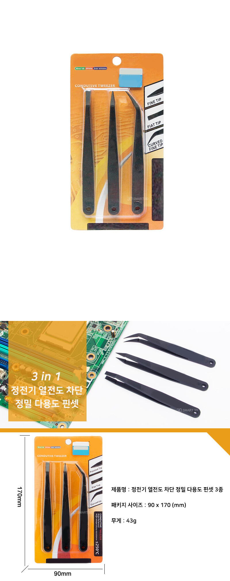 3종 정전기 열전도 차단 정밀 다용도 핀셋입니다.