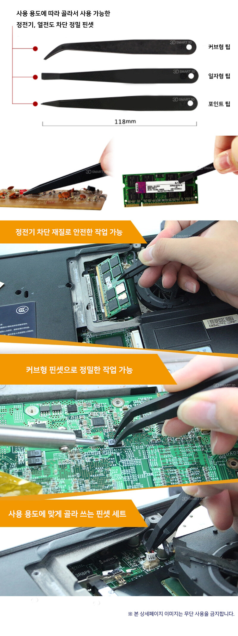 [VIP] 3종 정전기 열전도 차단 정밀 다용도 핀셋 세트 (전자기기 컨덕티브)