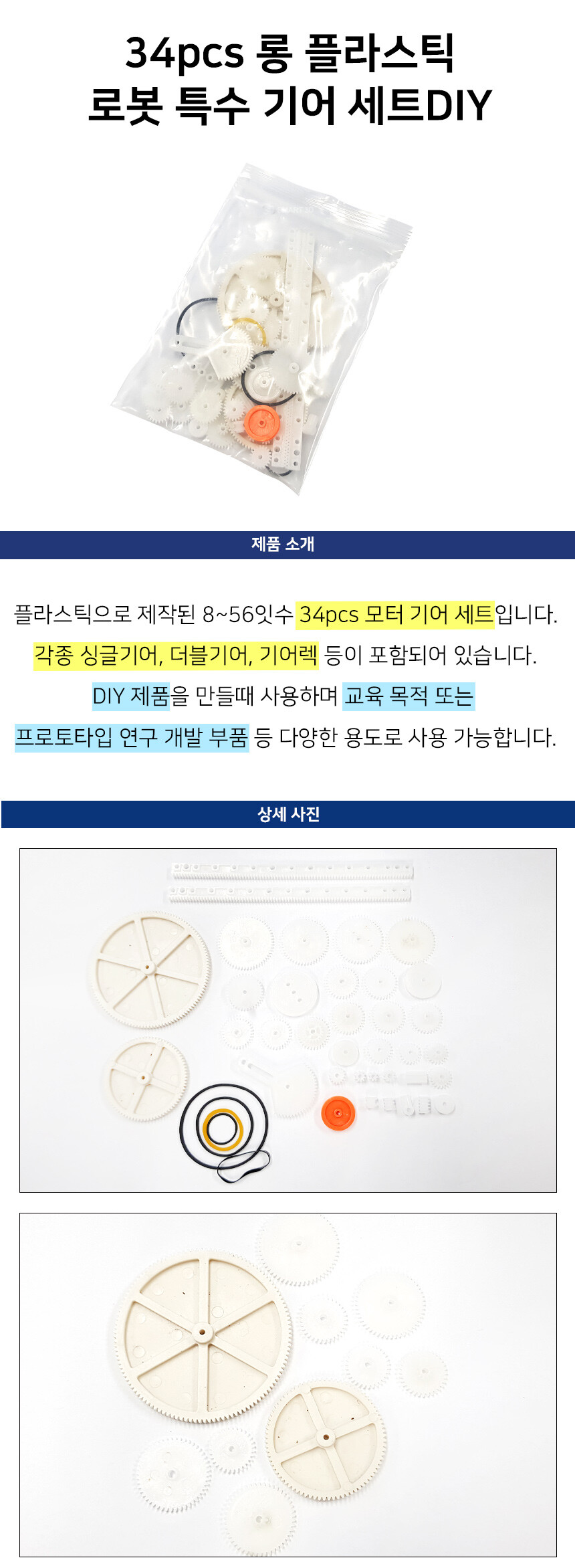 34종 플라스틱 로봇 특수 기어 세트 키트 DIY 스마트3D