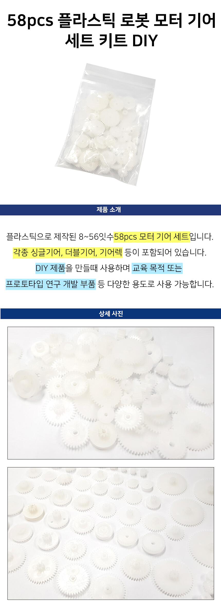 58종 플라스틱 로봇 모터 기어 세트 스마트3D DIY