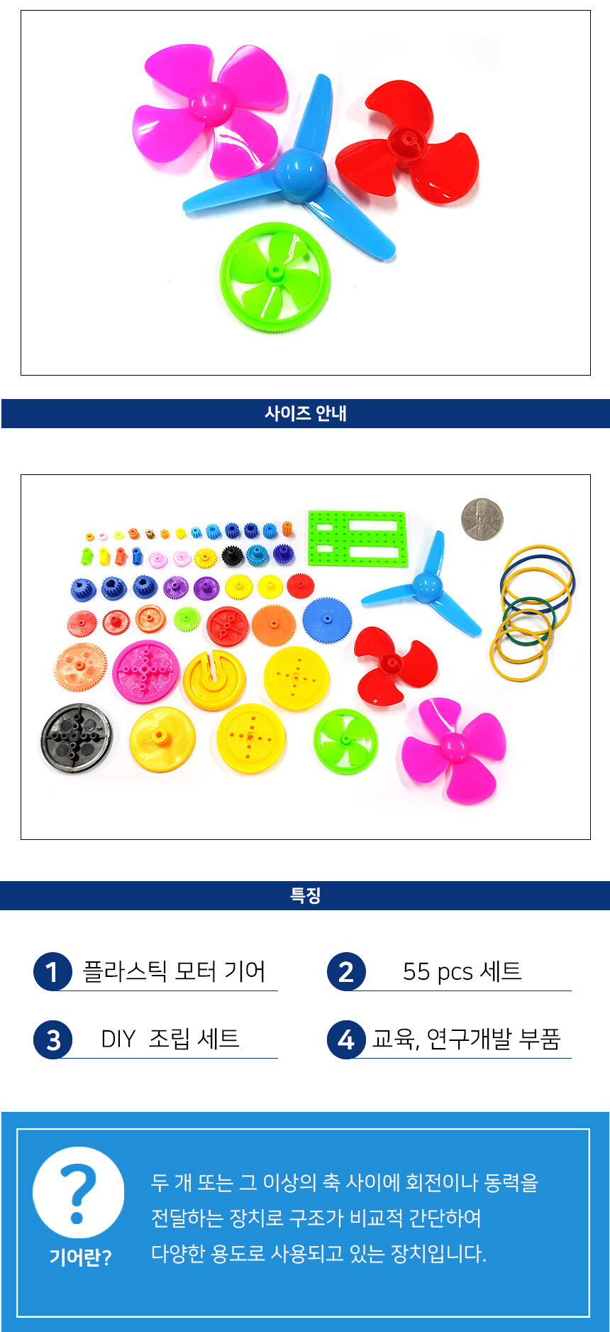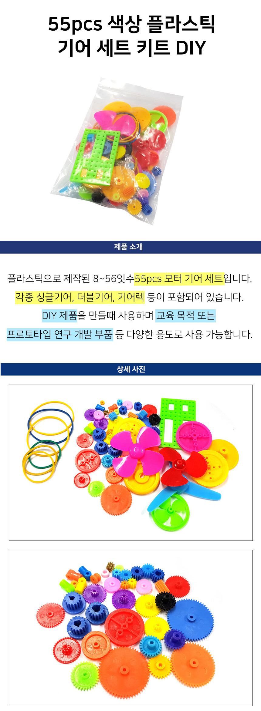 55종 색상 플라스틱 기어 세트 과학 스마트3D