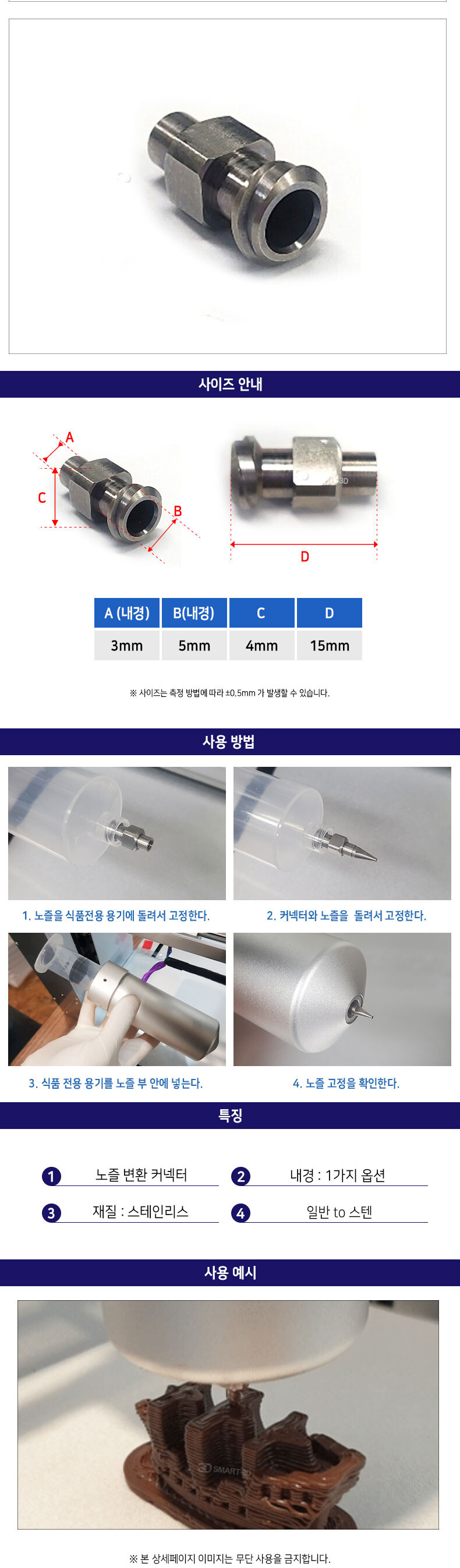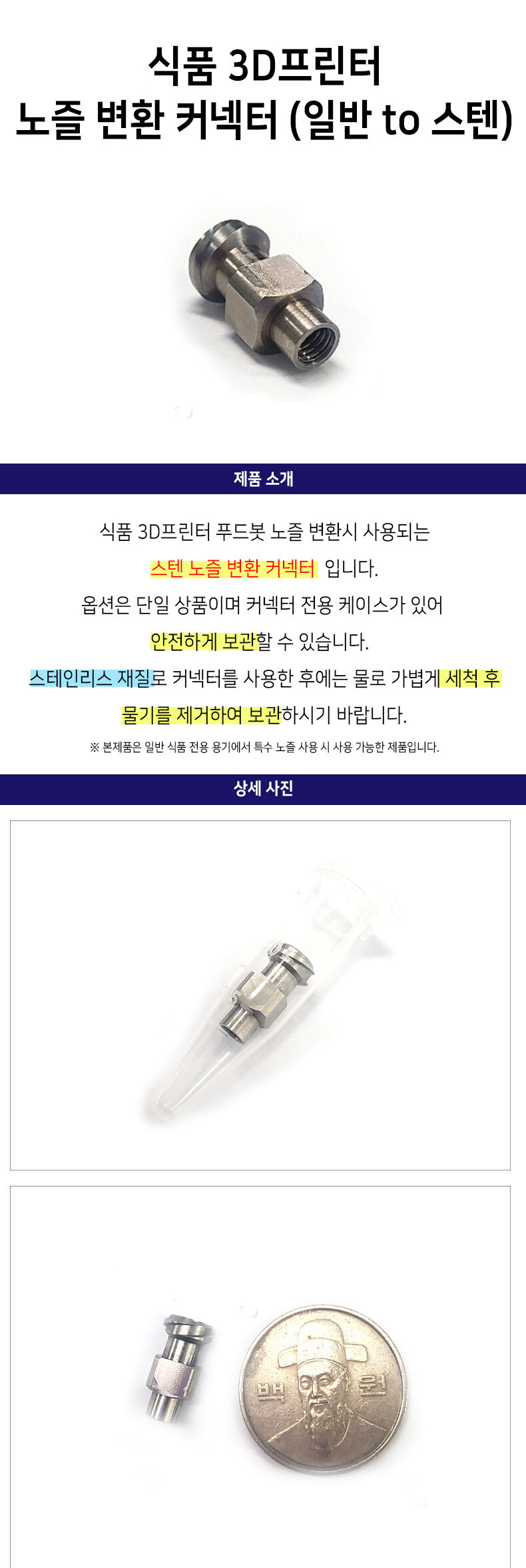 [VIP] 식품 3D프린터 노즐 변환 커넥터 (일반 to 스텐)