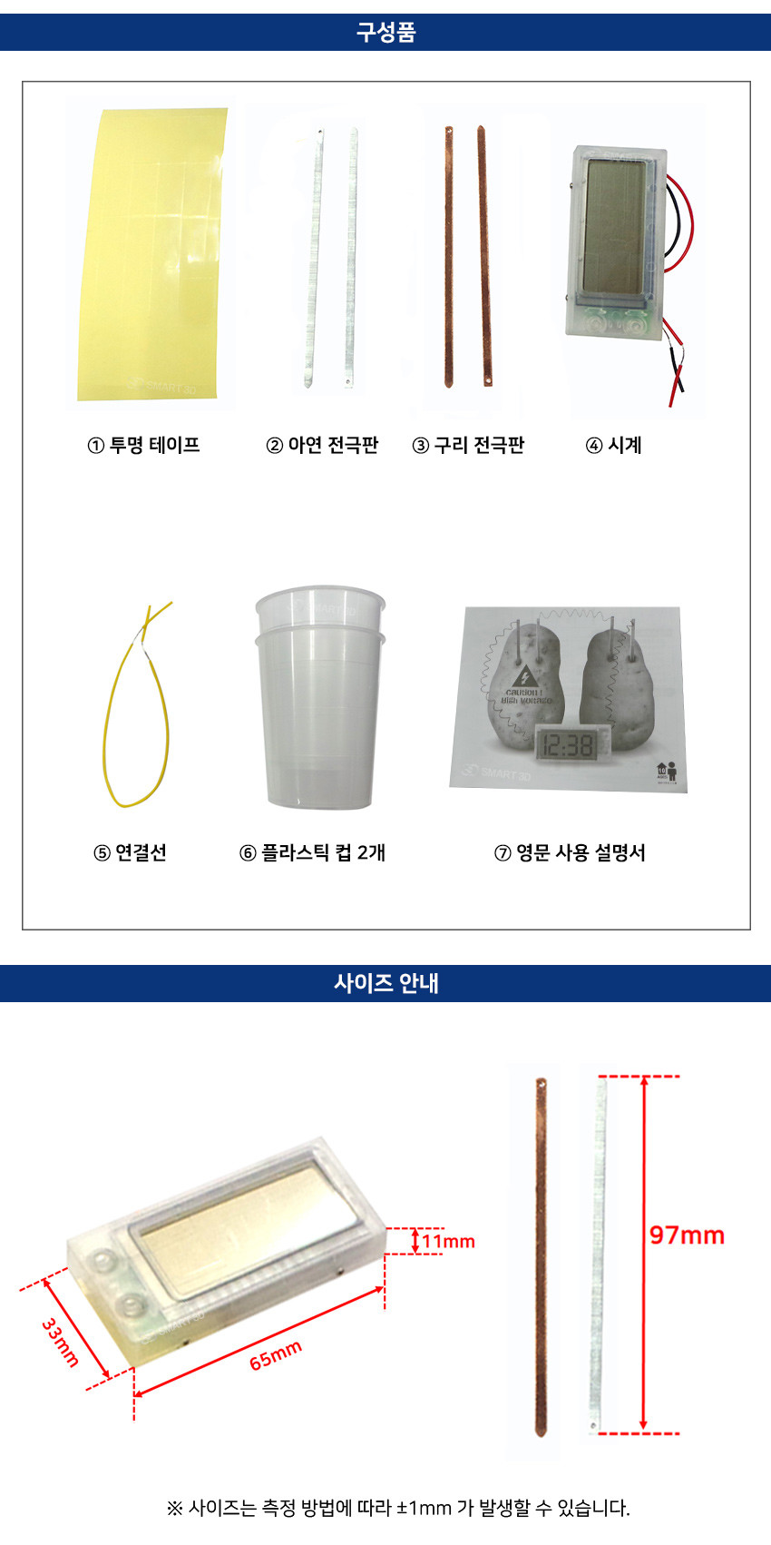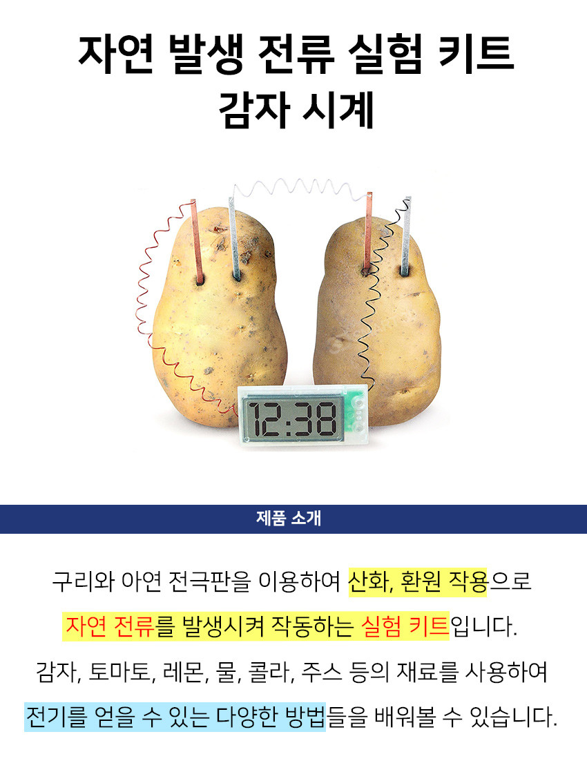 자연 발생 전류 배터리 실험 감자 시계 교육 키트 화학 물리 과학 교육 체험 방과후 수업