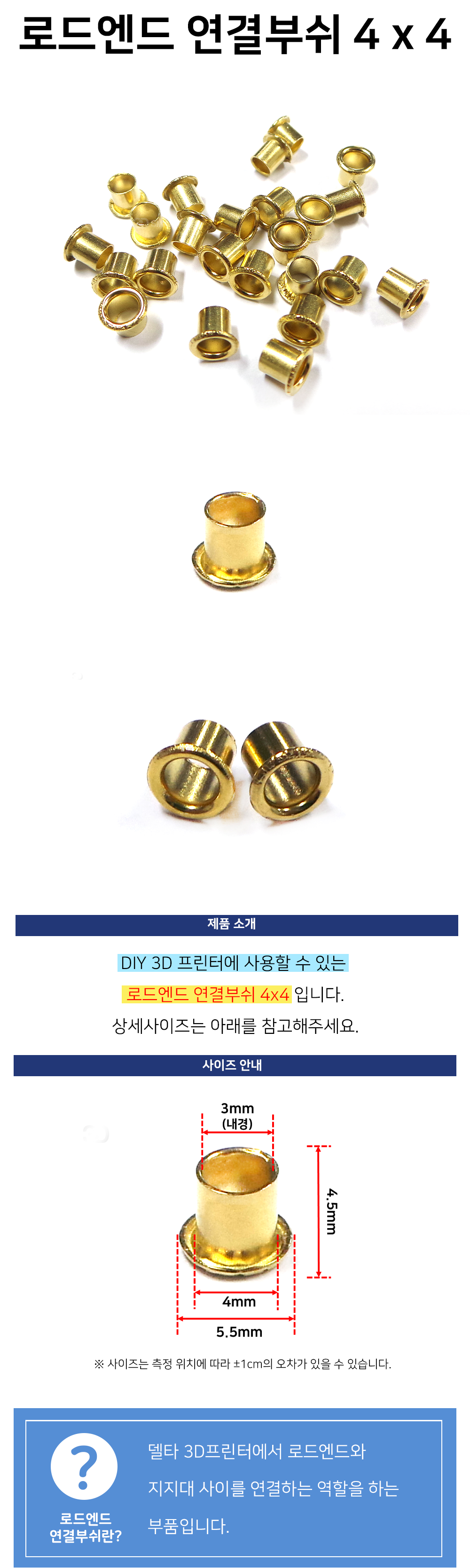 DIY 3D프린터에 사용할 수 있는 로드엔드 연결부쉬 4x4 입니다.