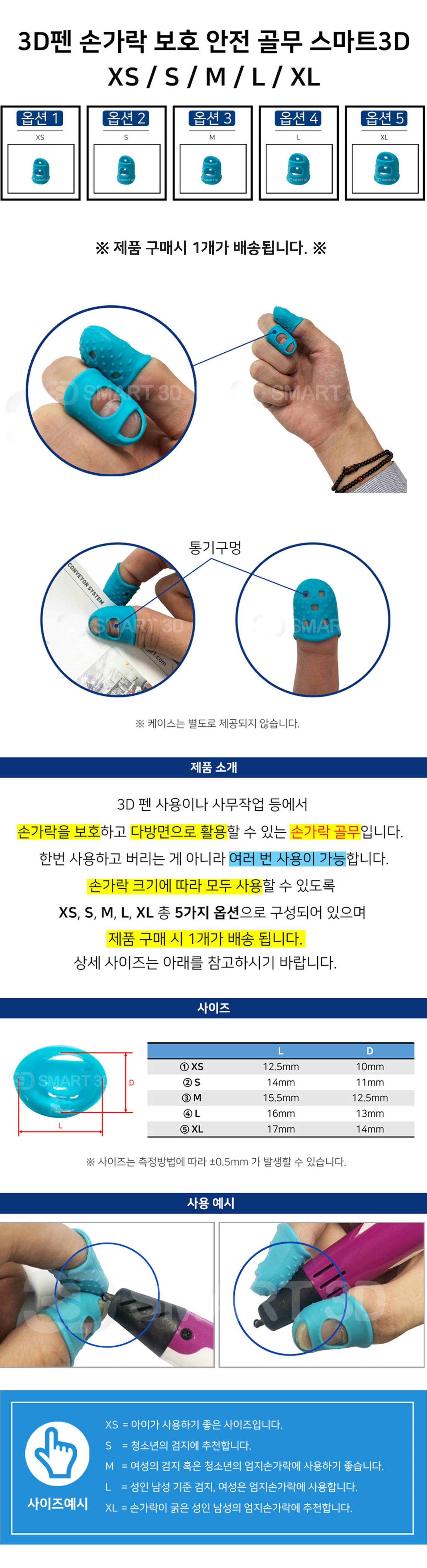 3D펜 사용이나 사무작업 등에서 손가락을 보호하고 다방면으로 활용할 수 있는 손가락 골무입니다.