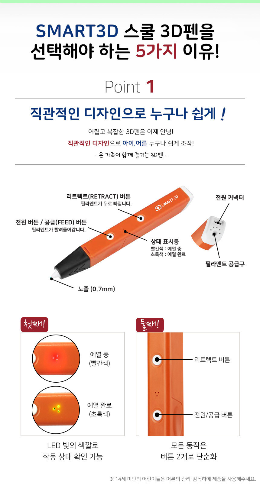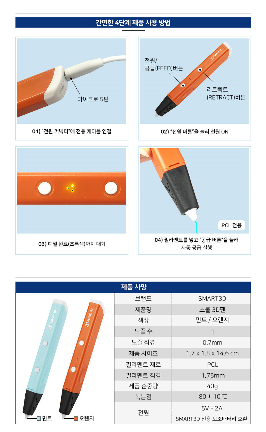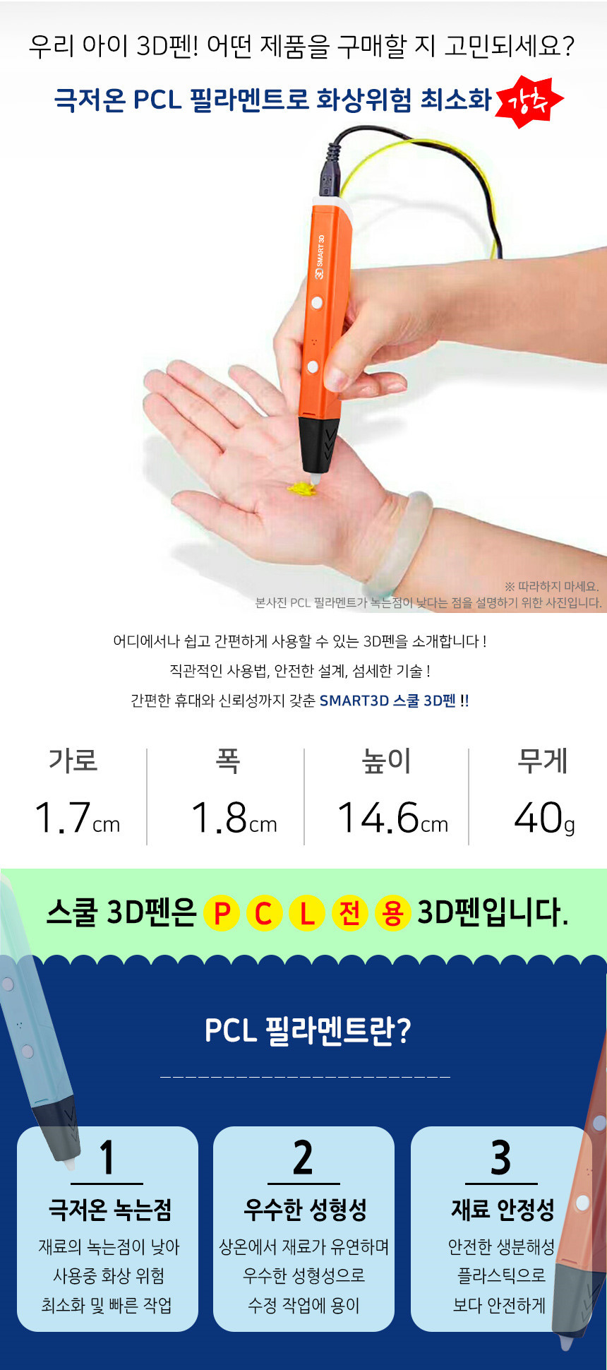 [스쿨 3D펜] 교육용 취미용 안전 저온 PCL 전용 (스마트3D 3D PEN)