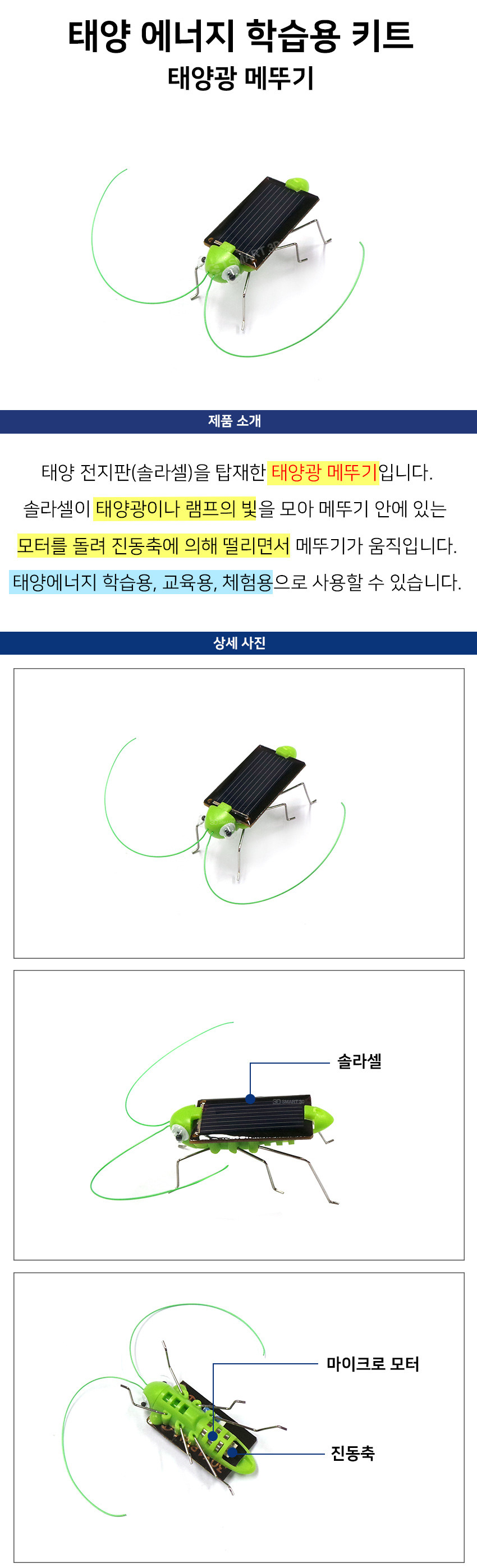 태양열 태양광 태양 에너지 곤충 이해 학습용 교육용 체험용 과학 바퀴벌레 (솔라 solar) 방과후 수업 태양열 태양광 방과후 수업