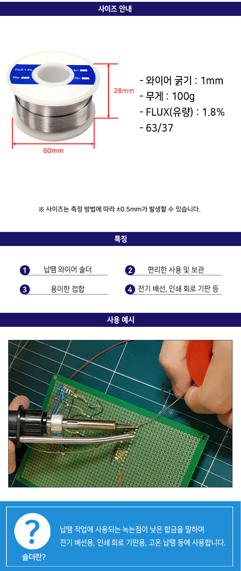 1mm 100g 보급형 고순도 컷팅 솔더 와이어 실납 (SMART3D)