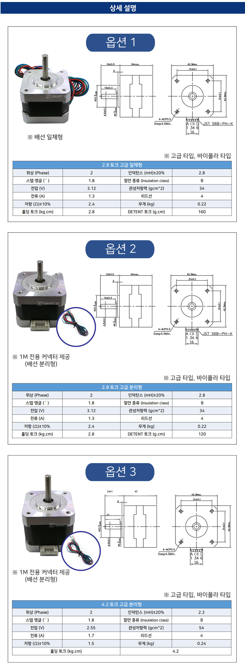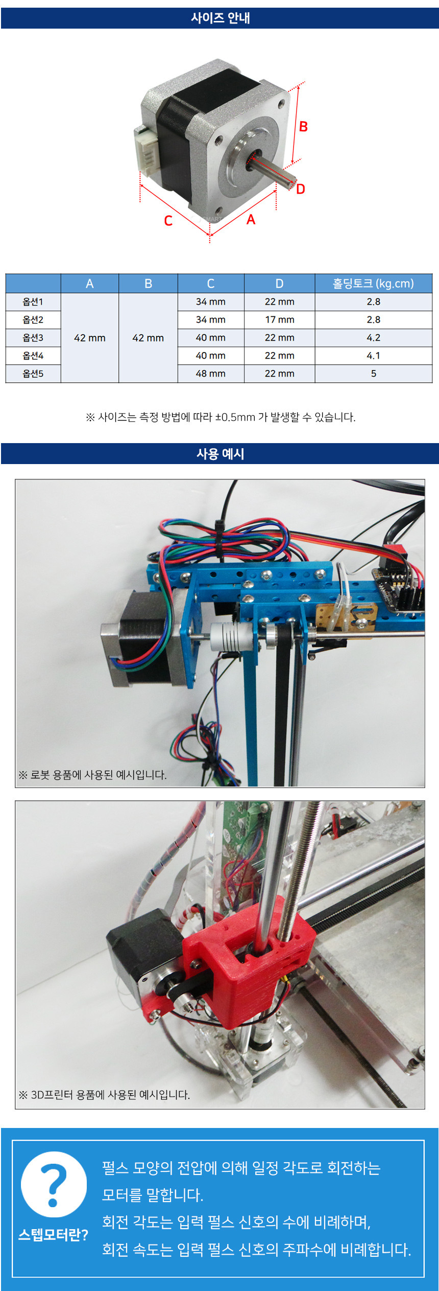NEMA17 고급형 스텝 모터 종결자 모음 3D프린터 로봇 스테퍼 스테핑 네마17 42각