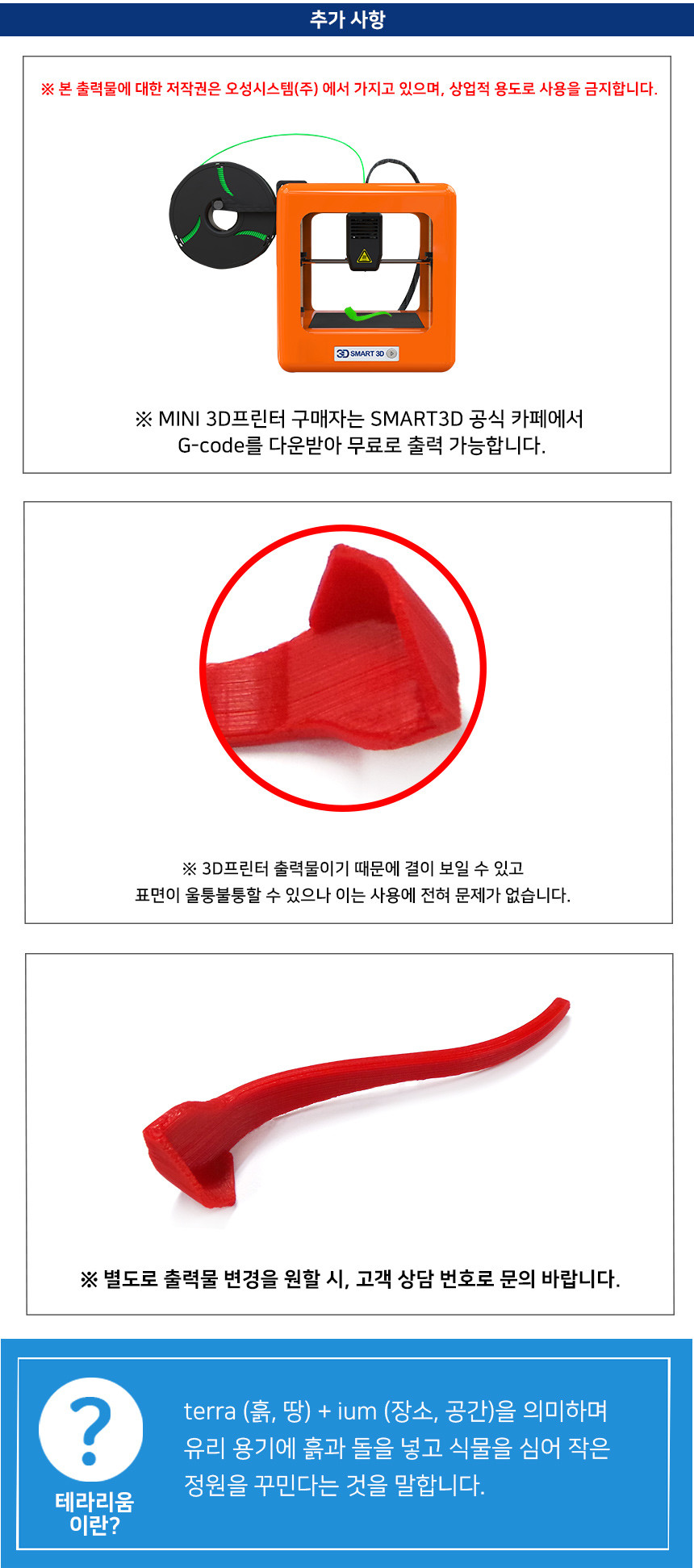 본 제품은 고퀄리티의 안전성이 검증된 SMART3D 전용 필라멘트를 사용하여 3D프린터로 출력한 상품입니다.