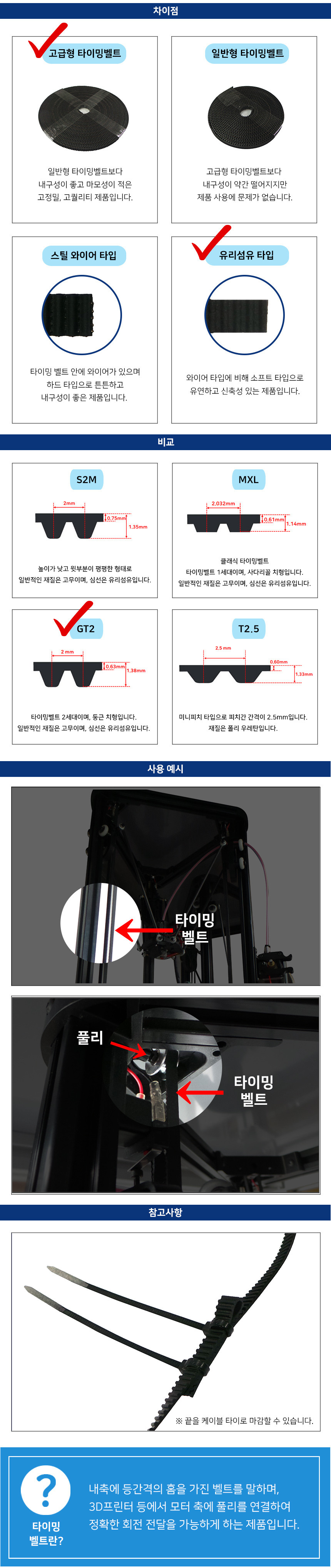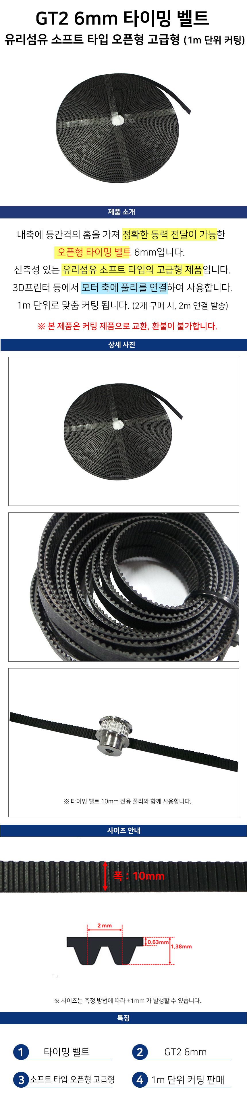 GT2 6mm 유리섬유 소프트 타입 오픈형 고급형 타이밍 벨트 1m 단위 맞춤형 커팅 (Open type) 3D프린터 풀리 호환 열림형 스마트3D