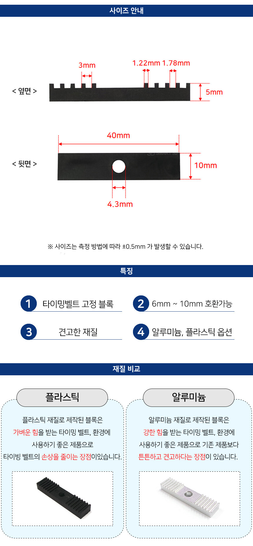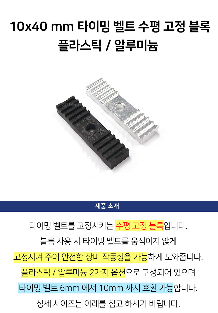 10x40mm 타이밍 벨트 수평 고정 블록 (플라스틱 / 알루미늄) 블럭 브라켓
