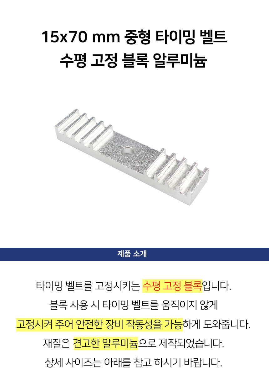 15x70mm 중형 타이밍 벨트 수평 고정 블록 블럭 브라켓 알루미늄