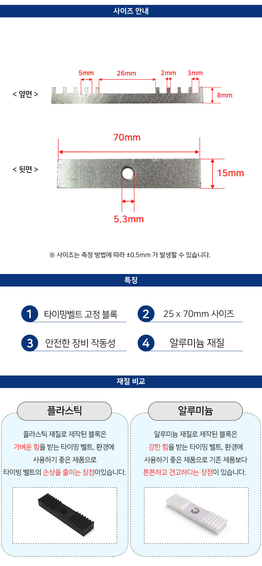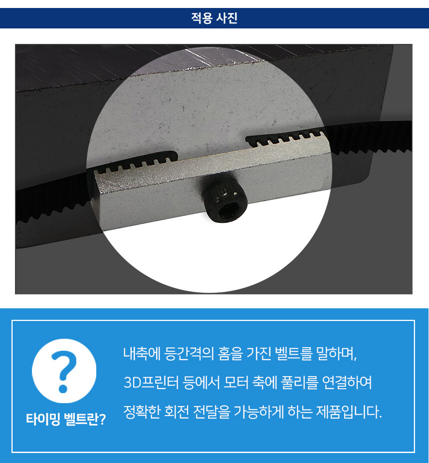 블록 사용시 타이밍 벨트를 움직이지 않게 고정시켜주어 안전한 장비 작동성을 가능하게 도와줍니다.