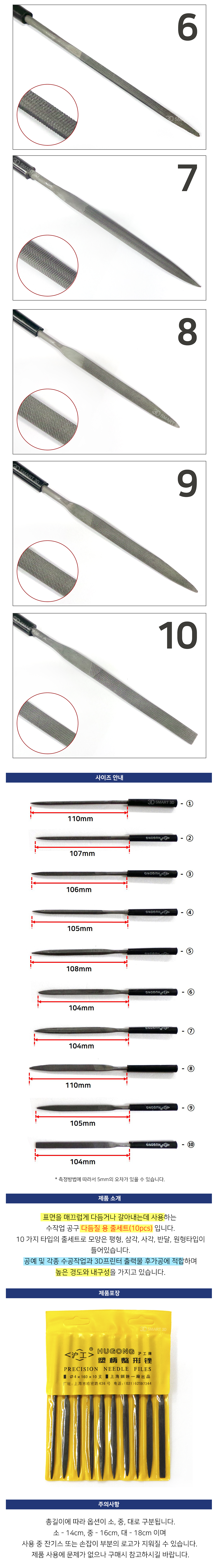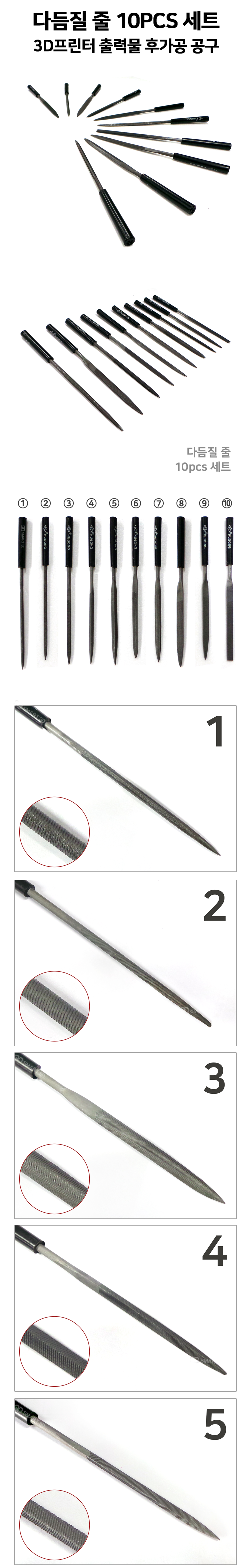 표면을 매끄럽게 다듬거나 갈아내는데 사용하는 수작업 공구 다듬질 용 줄세트 (10pcs)입니다.
