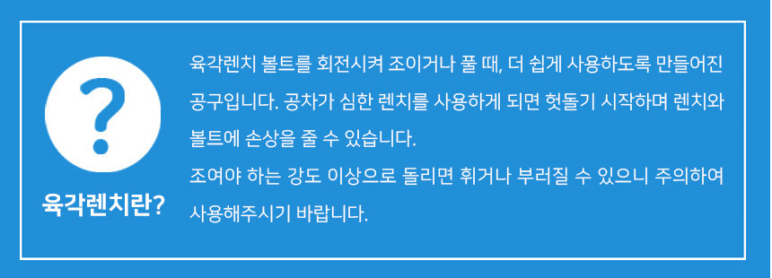 사용시 볼트에 렌치를 직각으로 삽입해야 볼트 및 렌치의 손상을 막을 수 있습니다.
