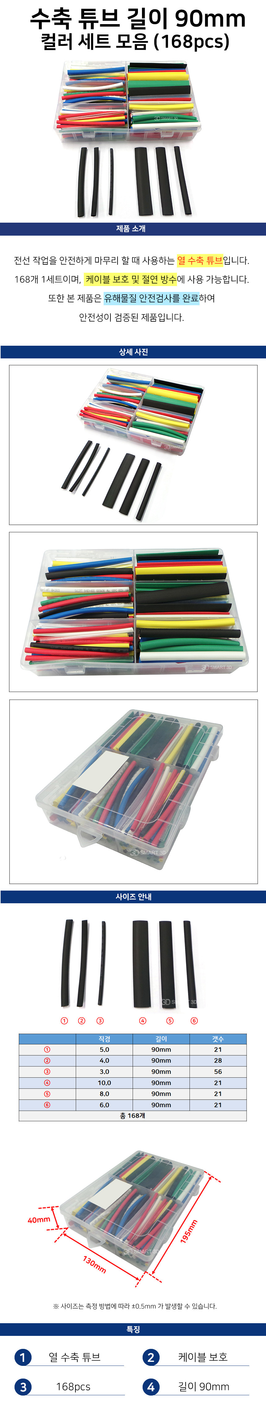 168pcs 길이 90mm 수축튜브 컬러 세트