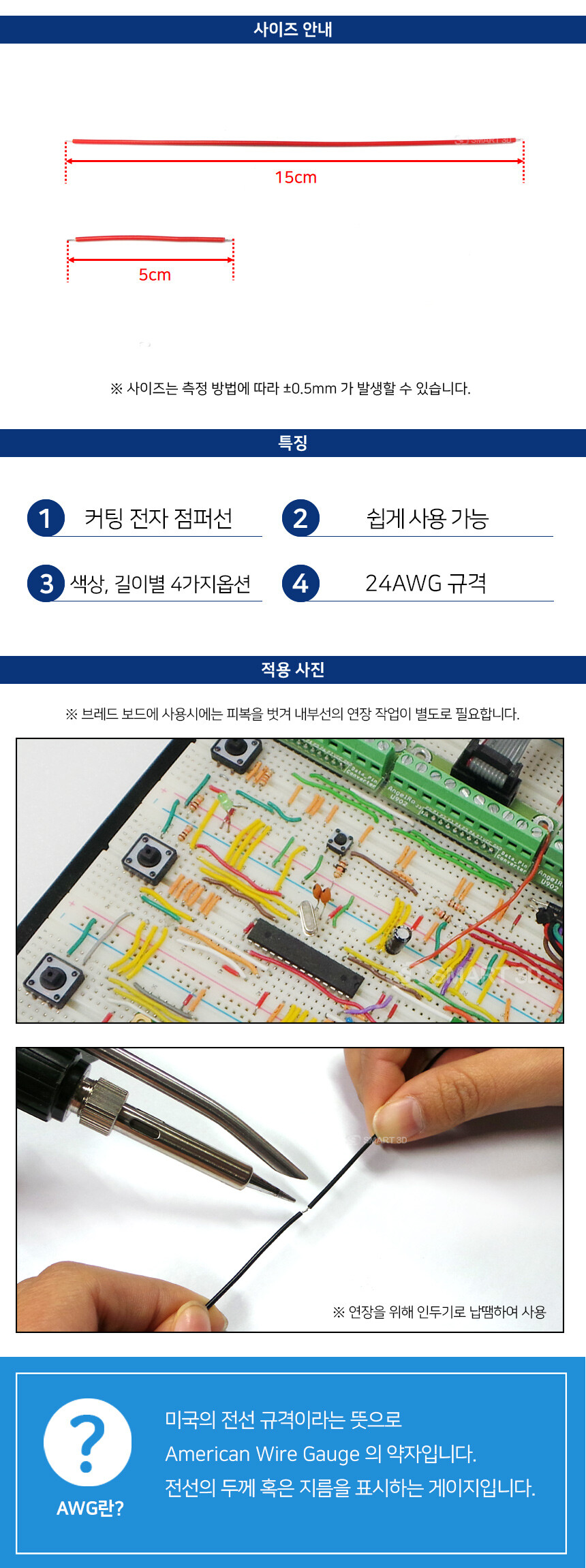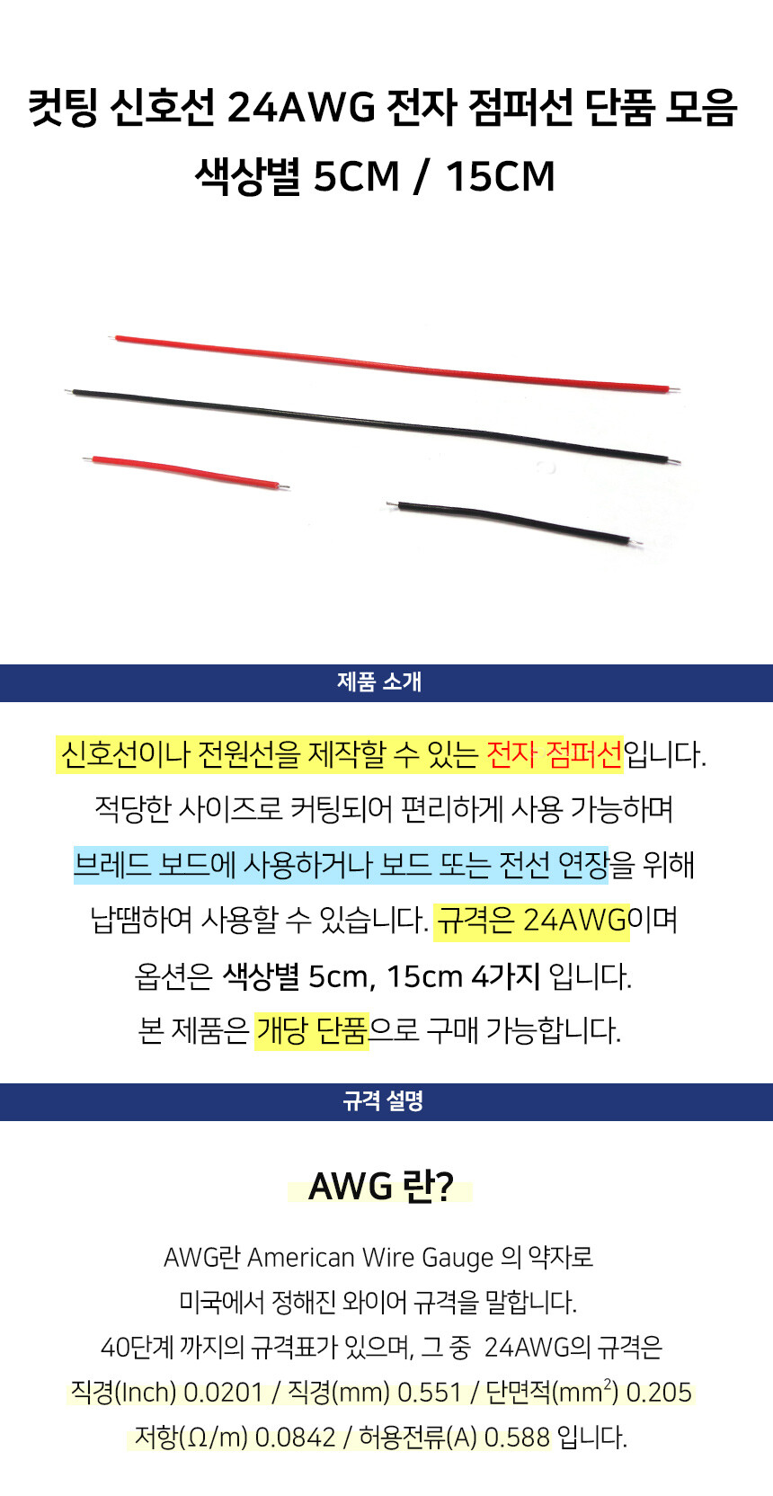 커팅 신호선 24AWG 전자 점퍼선 브레드보드 납땜용 단품 모음 (색상별 5CM / 15CM)
